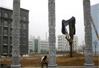 古代生肖石雕龍柱為公園擺放的藝術(shù)裝飾品
