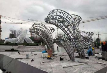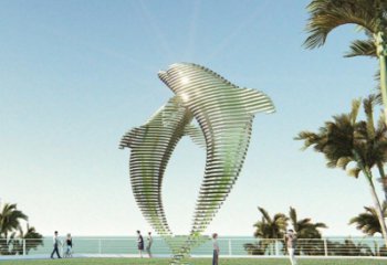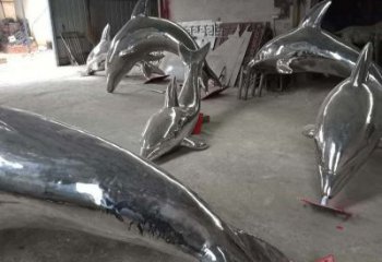 不銹鋼鏡面海豚公園雕塑探索海洋的美麗