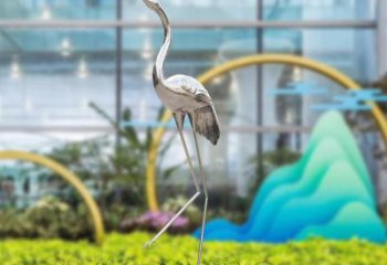 不銹鋼景觀雕塑,鏤空仙鶴閃耀寶貝山林