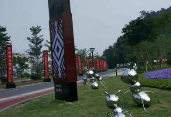 不銹鋼鏡面螞蟻雕塑園林景觀裝飾的精美絕倫