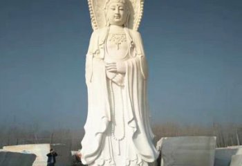 精美手工制作的漢白玉浮雕觀音大型佛像