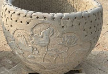 經(jīng)典雅致的庭院景觀精致理石浮雕水缸雕塑