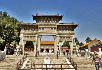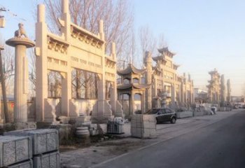 精美古典石牌樓是一種造型精美、設計古典的大型石牌樓,它可以美化你的寺廟景區,營造出優雅的氛圍。石牌樓的牌坊上有精美的雕刻,上面刻有佛經的經文,以及祈禱的文字,可以慰勞心靈,給人以安寧的感覺。
