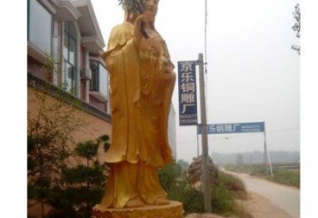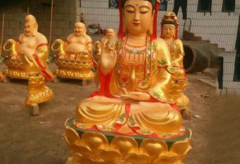大型彩繪貼金觀音雕塑對于一個環境空間的場域有著不可忽視的重要作用,能夠增加空間環境的風貌和特色。