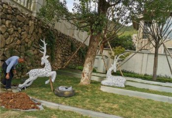 玻璃鋼雕塑梅花鹿,是一件融合自然美與幾何美的藝術(shù)品,結(jié)合公園、草坪等自然環(huán)境,將幾何圖形元素與梅花鹿相結(jié)合,完美呈現(xiàn)自然之美。