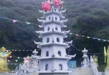 古典寶塔景觀園林,精美石雕青石多層搭配