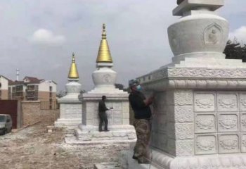 純銅舍利塔雕塑只是在望柱之間嵌上一整塊石雕欄板便算構成,望柱頭多雕刻云紋,加工也比照簡潔。