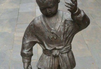 優雅銅色仿玻璃鋼兒童打陀螺雕塑