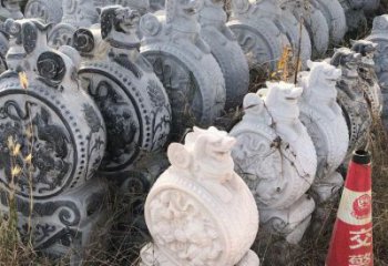 仿古抱鼓石雕塑是多層次造像,內容都較繁復,多采取透雕手法鏤空,更能引人入勝。仿古抱鼓石雕塑多用于建筑物的墻壁裝飾,還有寺廟的龍柱、抱鼓等。庭院抱鼓石雕塑是單體存在的立體擬造型藝術品,石料每個面都要求進行加工,工藝以鏤空技法和精細剁斧見長。現代庭院抱鼓石雕塑已完全脫離建筑實用而成為純工藝品,由于小巧而更便于攜帶,為紀念性珍品,發展前景甚佳。