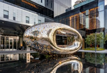 這件不銹鋼景觀雕塑以 “雙葫納福” 為核心意象,將傳統(tǒng)吉祥符號(hào)與現(xiàn)代材質(zhì)語言有機(jī)融合。主體為大小兩只葫蘆,取 “福祿雙全、福壽綿長(zhǎng)” 的諧音寓意,呼應(yīng)中國(guó)傳統(tǒng)文化中對(duì)圓滿與安康的精神追求。雕塑采用鏡面不銹鋼鍛造而成,金屬質(zhì)感在自然光下呈現(xiàn)出冷峻而靈動(dòng)的視覺張力,既契合現(xiàn)代公共空間的審美語境,又通過流暢的曲線造型,還原了葫蘆圓潤(rùn)飽滿的自然形態(tài)。葫蘆表面以紅色浮雕工藝,分別鐫刻 “福” 字團(tuán)紋與百壽篆字,在銀白底色的映襯下格外醒目,強(qiáng)化了福壽主題的表達(dá)。作為一件景觀雕塑,它不僅是公共空間的視覺焦點(diǎn),更通過符號(hào)化的設(shè)計(jì)語言,將傳統(tǒng)福文化轉(zhuǎn)化為當(dāng)代審美體驗(yàn),讓觀者在日常場(chǎng)景中感知到文化傳承與精神慰藉。