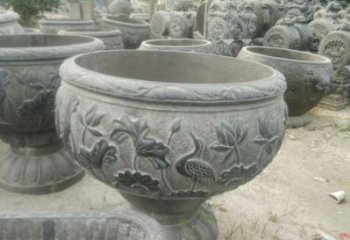 青石仿古石雕園林庭院浮雕蓮花缸雕塑