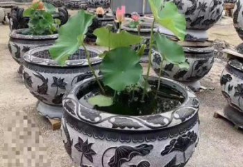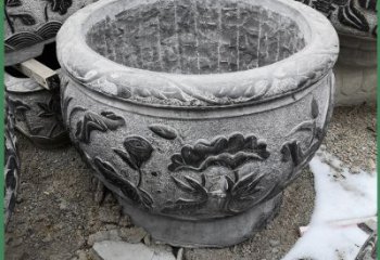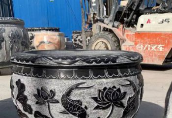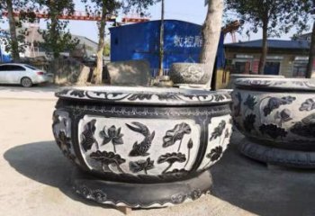 仿古石雕荷花青石魚缸,為您的戶外擺放福字