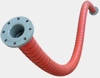 不銹鋼連續成型波紋管,外加金屬網套,改性聚丙烯纏繞帶,減輕因長期拖拉引起金屬軟管的損傷,法蘭連接,一端為固定法蘭,一端為活套法蘭。